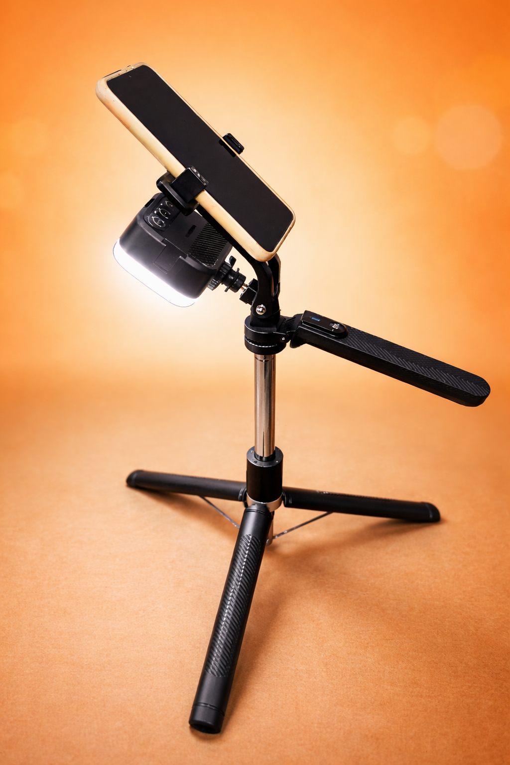 يجمع بين حامل P200 القوي + إضاءة RGB متعددة الألوان باش يعطيك تصوير ثابت، إضاءة احترافية، ونتيجة عالية الجودة سواء في المنزل أو خارج.